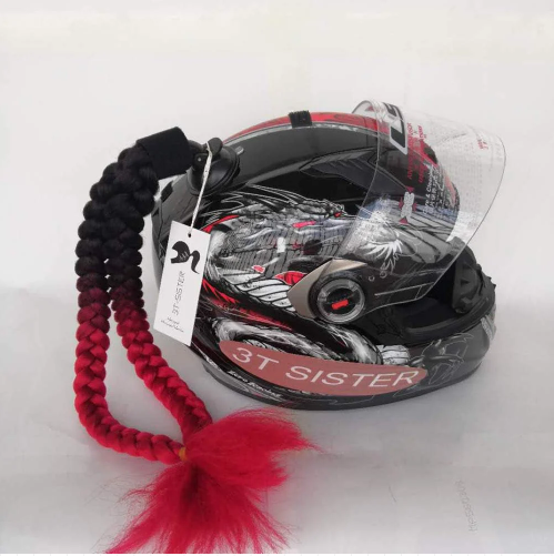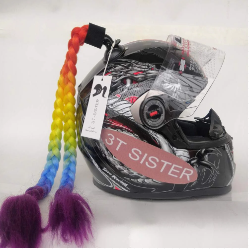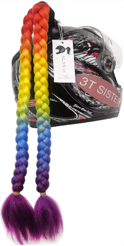Ponytail Pigtails for adhesion to Motorcycle Helmet, Bicycle Helmet, etc